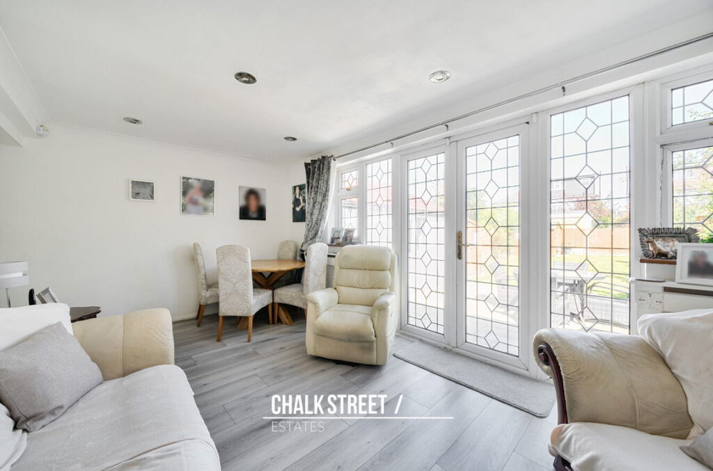 From here, double doors open onto the third reception room which overlooks the rear garden via the French patio doors.