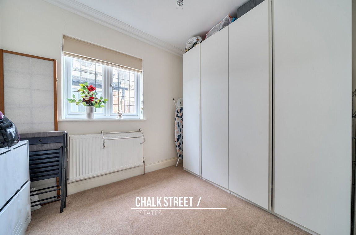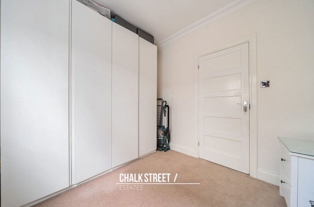 Accessed from the hallway are the three well-proportioned bedrooms. The master bedroom is located at the rear of the property, overlooking the garden. Bedroom 2, at the front of the home, enjoys a beautiful bay window. Bedroom 3, measuring 9’7 x 8’9, could alternatively be used as a second reception room or study.