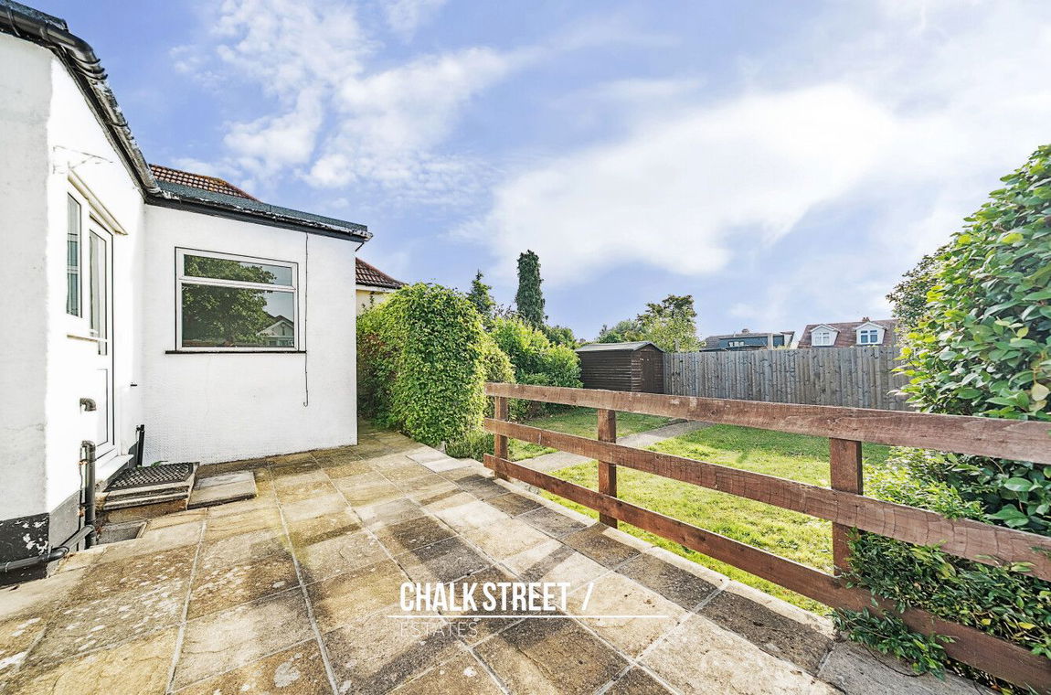 Positioned in a sought-after location within easy reach of Upminster town centre and station, this spacious two bedroom semi-detached bungalow offers well-presented interiors, generous living space, and a substantial rear garden.