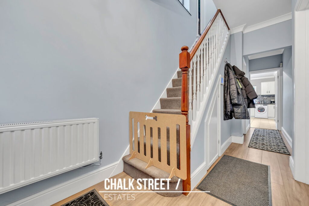 Upon entering, via the enclosed porch, you are welcomed by an entrance hallway with stairs rising to the first floor.