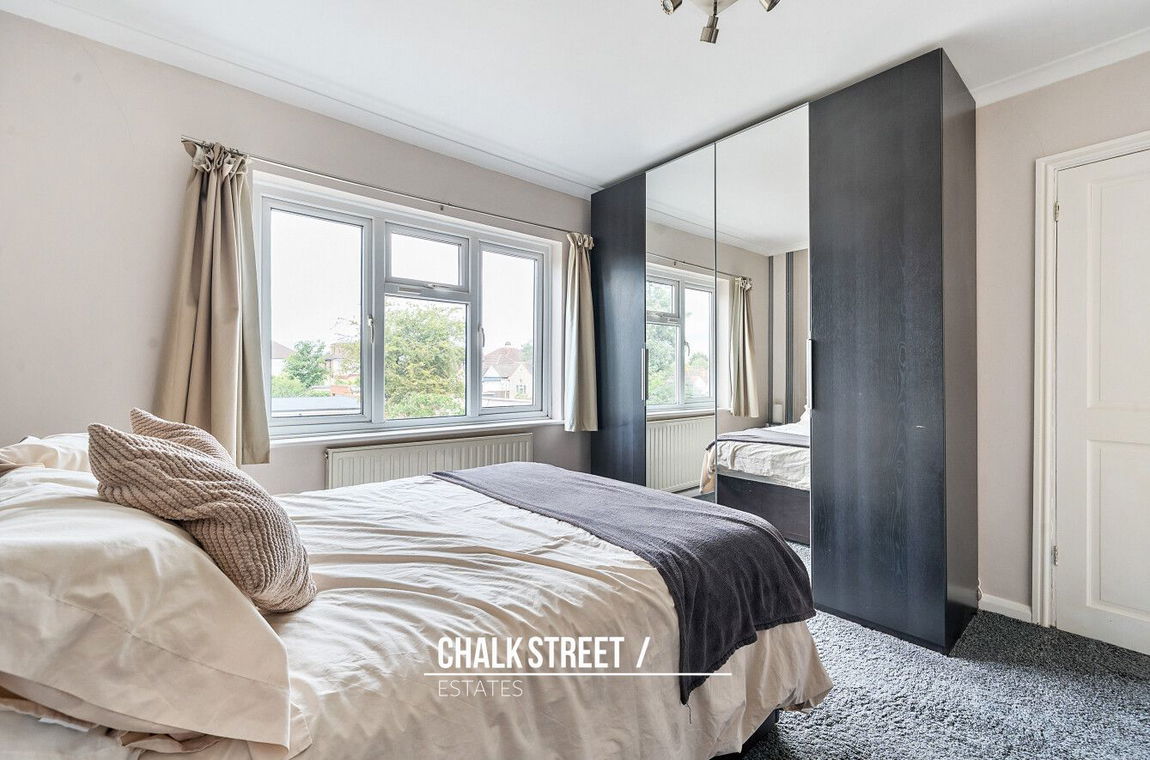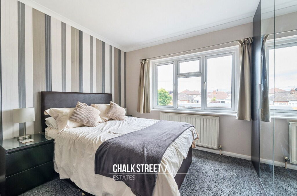 Heading upstairs, there are two double bedrooms and a further single. The master bedroom boasts a beautiful bay window and fitted wardrobes.