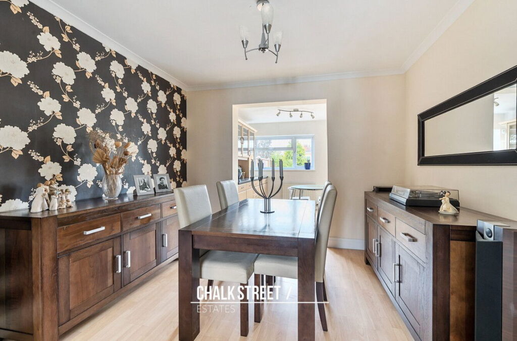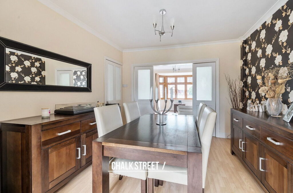 Bi-folding doors open through to the dining room which is again presented with neutral tones.