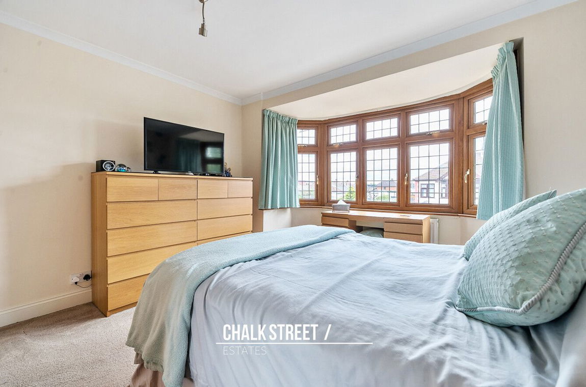 Measuring 13’11 x 12’, the principal reception room is flooded with natural light from the large bay window to the front elevation. Decorated with neutral tones, decorative cornice and ceiling rose, the reception room also carpets underfoot.