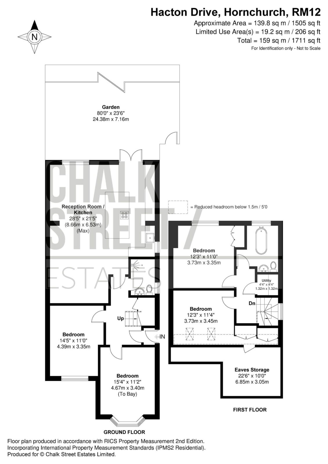 The rear garden measures approximately 80’ x 23’ and enjoys a north-facing aspect, providing a generous outdoor space.