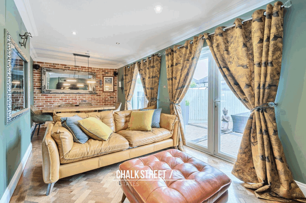 Spanning the full width at the rear of the property is the third reception room. Overlooking the garden and measuring 22’ x 9’2, the room is the perfect space for modern family living. Two sets of French doors open onto the rear and flood the space with natural light.