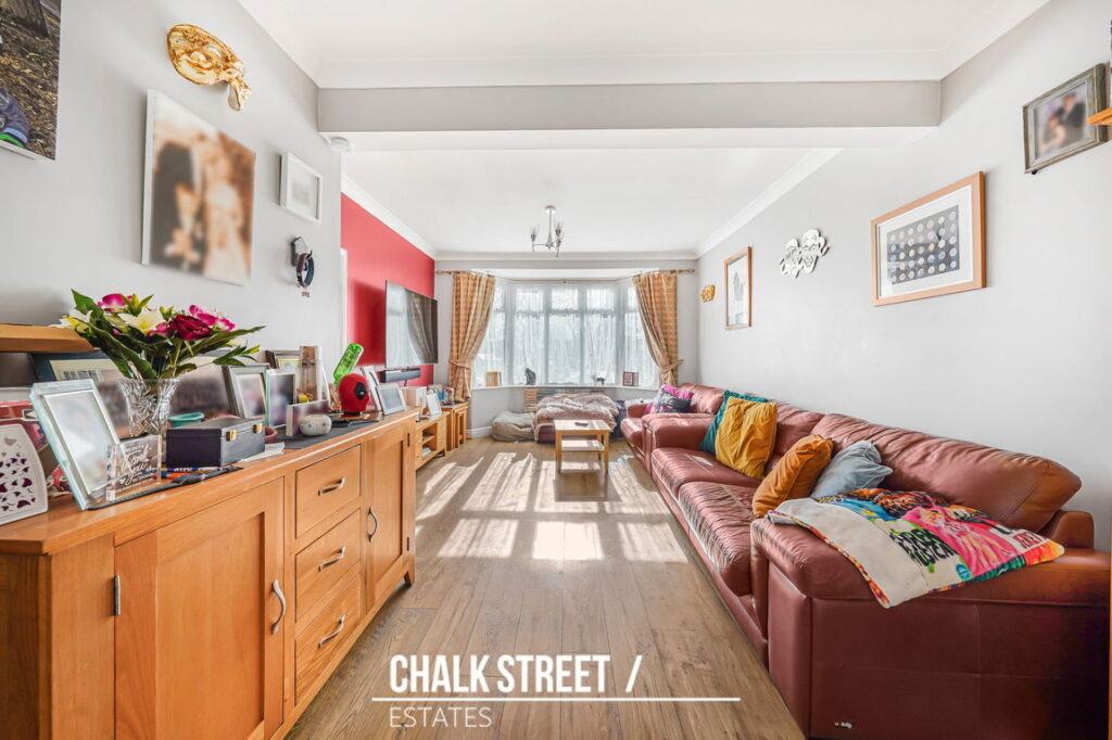 To the front, the principal reception room spans an impressive 21’1”, enhanced by a bay window and offering clearly defined areas for both seating and formal dining.