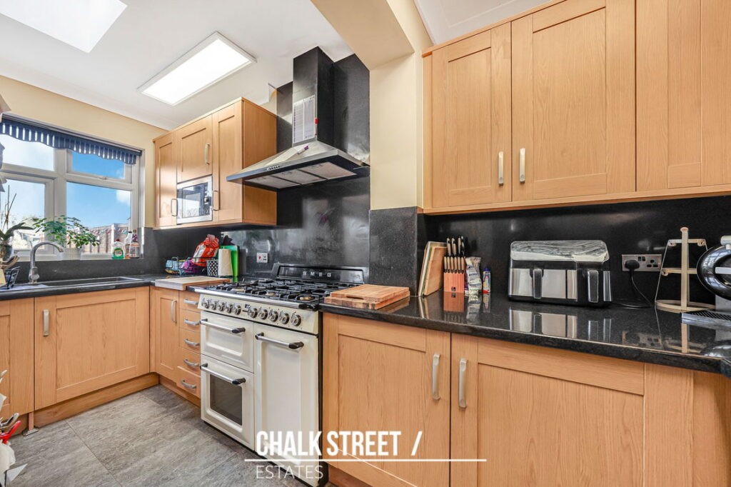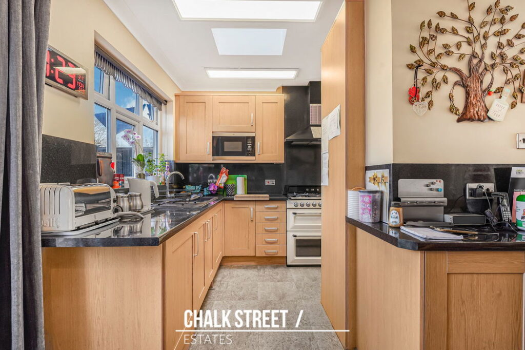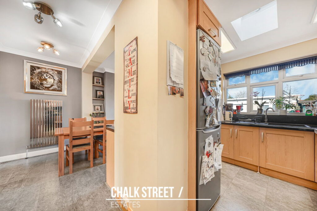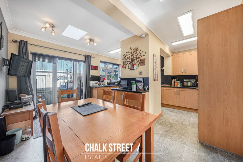 The ground floor has been extended to the rear to create a generous kitchen / dining room measuring 16’4” x 14’3”, providing excellent everyday living space with ample work surfaces, storage and room for a dining table. Double doors open directly onto the rear garden, creating a natural flow between internal and external space and making it particularly well suited to entertaining.