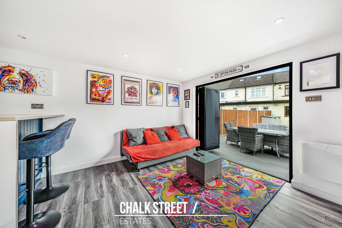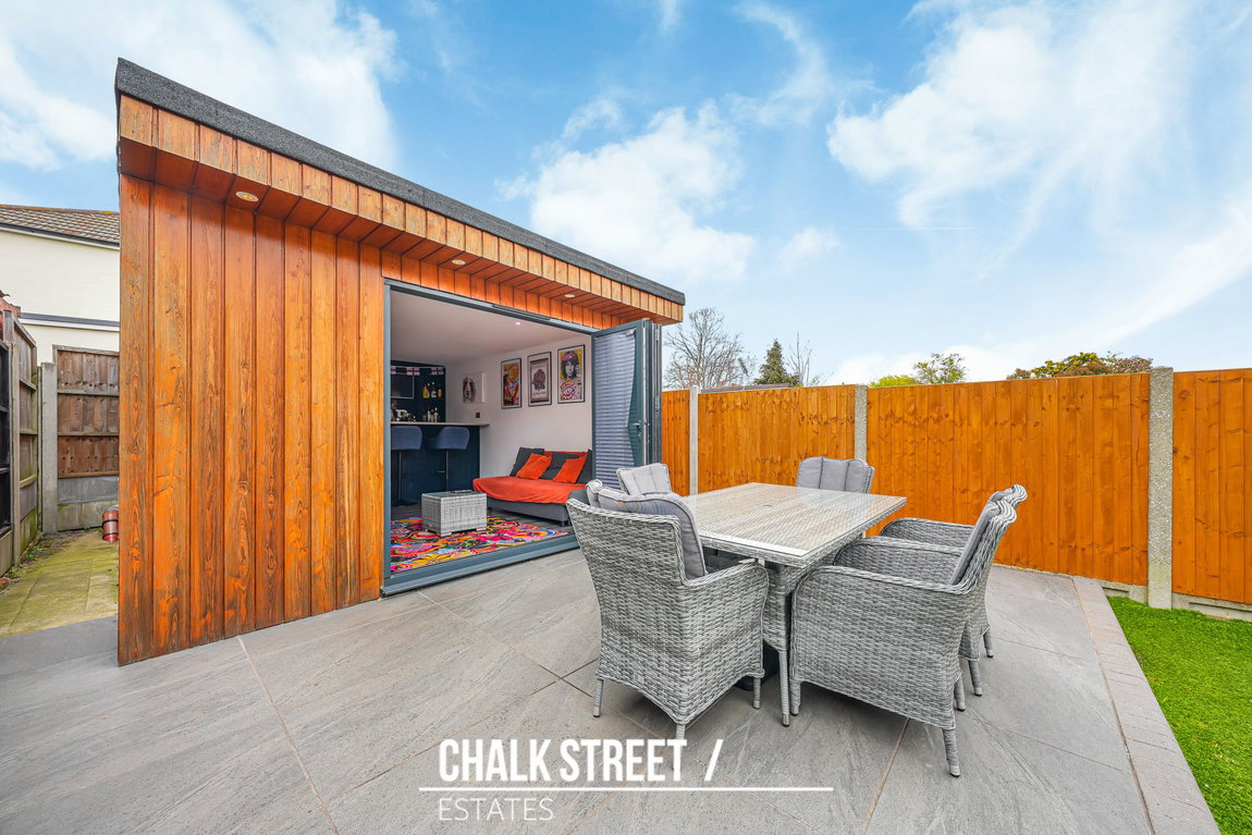 The 65' rear garden offers a generous outdoor space complemented by a substantial outbuilding with a W/C. This highly versatile space offers multiple uses such as a bar, home office or a gym dependant on individual's needs.