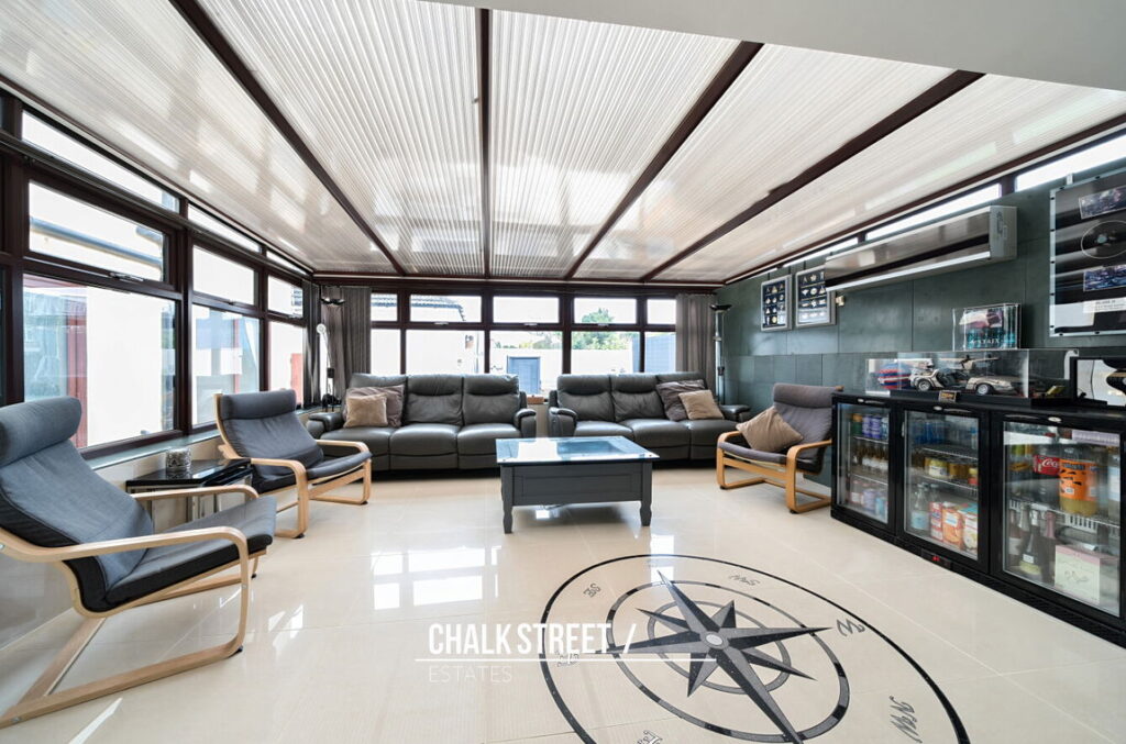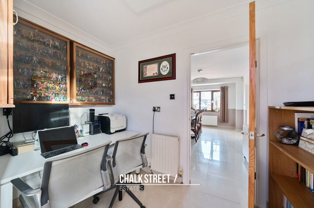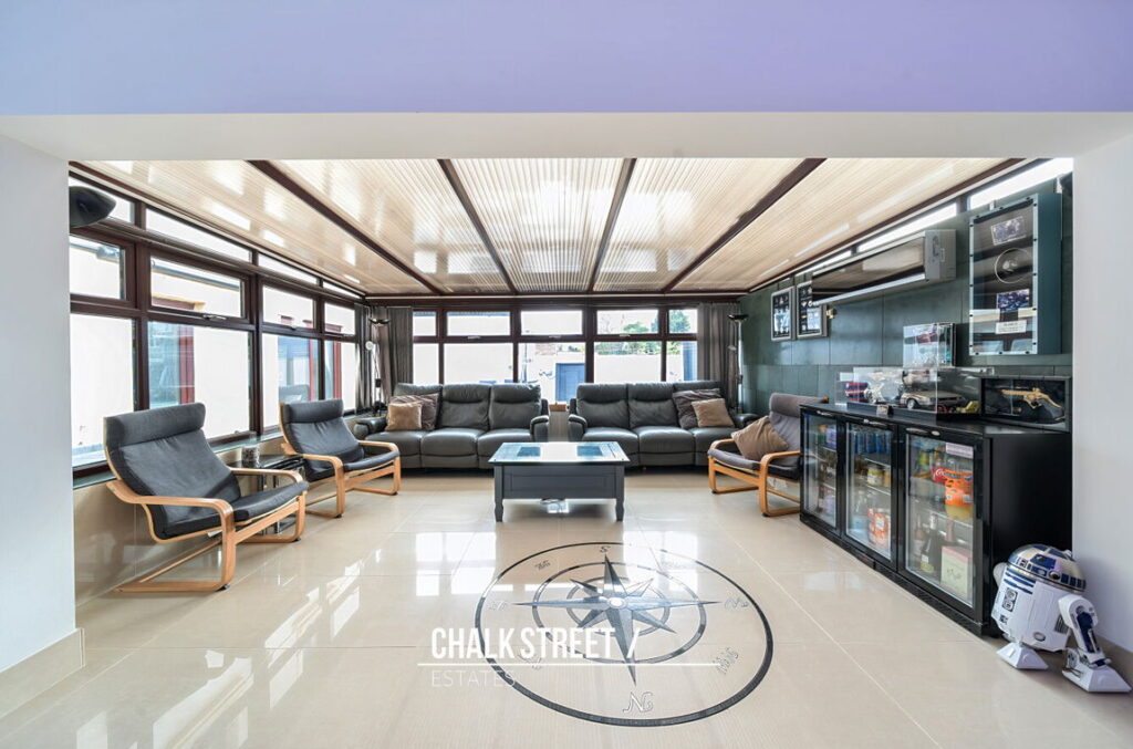 At the rear of the home there is a large entertainment room (21’5 x 13’3) which flows through to the conservatory (15’11 x 12’2). This spacious area provides the perfect space for modern family living or for hosting family events with the benefits of a fitted bar. Accessed off such there is an additional study / office (10’1 x 6’3) which could be used as a bedroom.