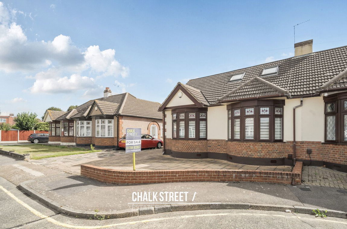 Tucked away within a quiet cul-de-sac just 0.6 miles from Romford Elizabeth Line Station is this well-presented three bedroom semi-detached chalet bungalow.