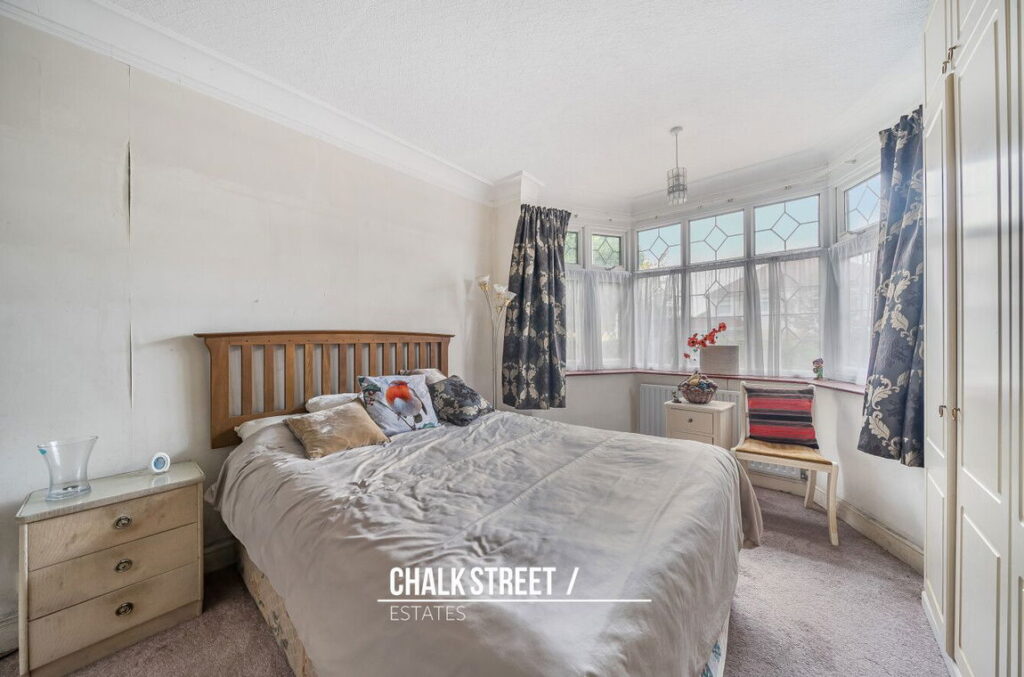 The first bedroom is a spacious double, located opposite the living room, also at the front of the house, and features a large bay window. There is a second bedroom at the rear of the property which is also a double.