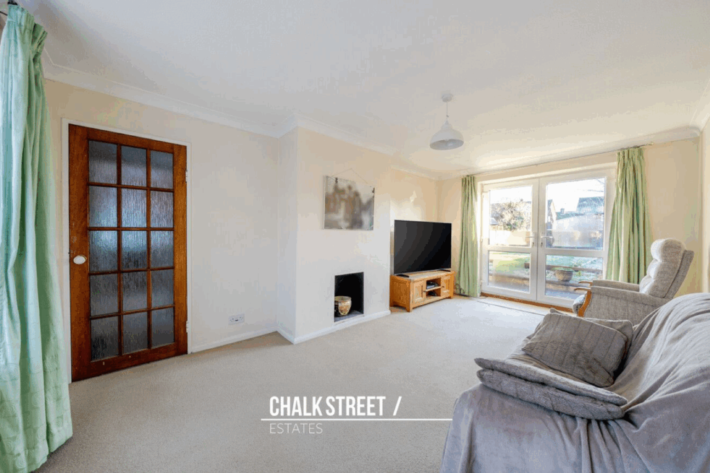 Upon entering, you are greeted by a welcoming hallway. Spanning the right-hand side, the spacious reception room is centred around a feature fireplace, with a large window to the front allowing natural light and double patio doors to the rear providing seamless access to the garden.