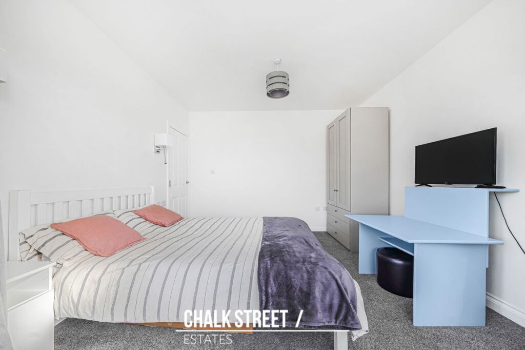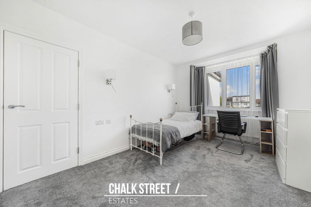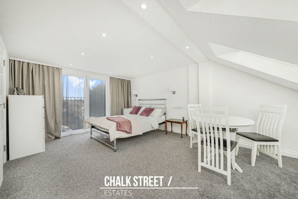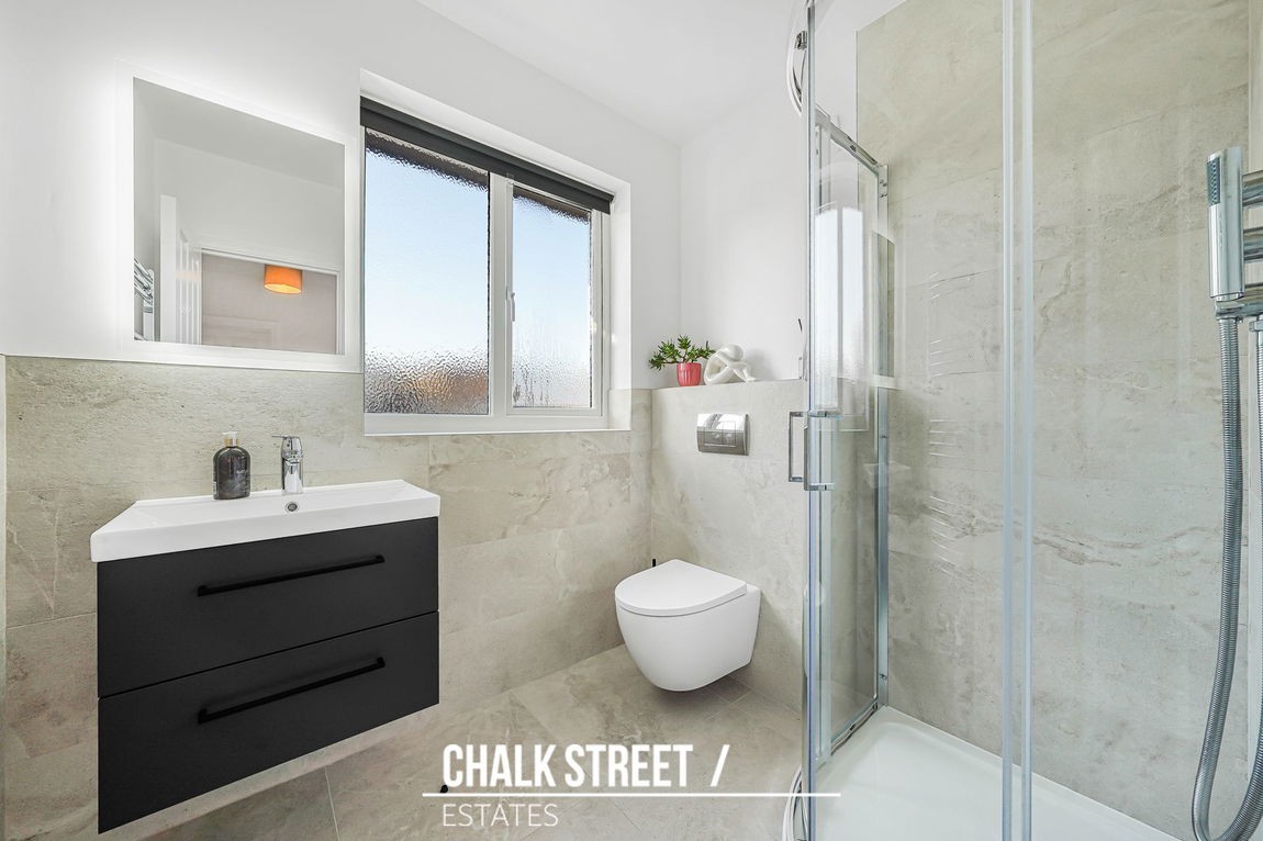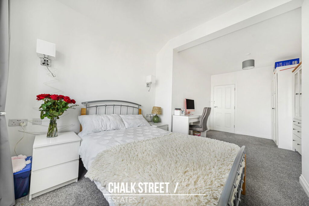 The loft has been thoughtfully converted to create an impressive master-bedroom. This spacious bedroom benefits from a Juliet balcony allowing for excellent natural light and is further complemented by a modern en-suite shower room.