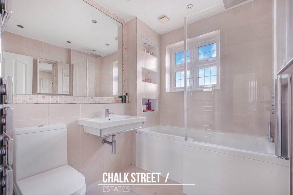 At the front of the home is the well-appointed, modern family bathroom, featuring high-quality sanitary-ware and a shower bath.