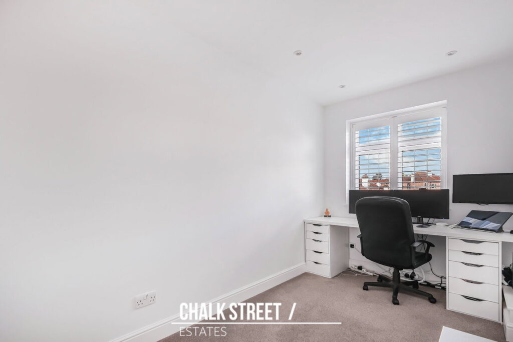 Heading up to the first floor, there are three well-proportioned double bedrooms, with bedrooms one and three featuring fitted wardrobes. A further single bedroom is positioned at the front of the home, currently arranged as a study/office.