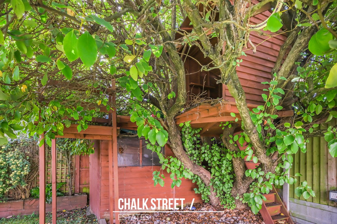 The 40ft south-west facing rear garden commences with a raised patio, with steps leading down to the remainder of the garden which is predominantly laid to lawn, bordered with various shrubs and trees, providing a delightful outdoor space for relaxation and enjoyment. The garden further benefits from rear access, along with a useful storage shed and a charming tree house, making it ideal for families and additional outdoor storage.