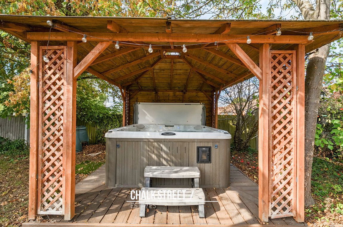 Externally, the property enjoys a wonderful 146 ft south facing rear garden, mostly laid to lawn with a large patio area ideal for summer dining. To the rear, a detached outbuilding currently arranged as a gym and store offers superb versatility for use as a home office or leisure space.