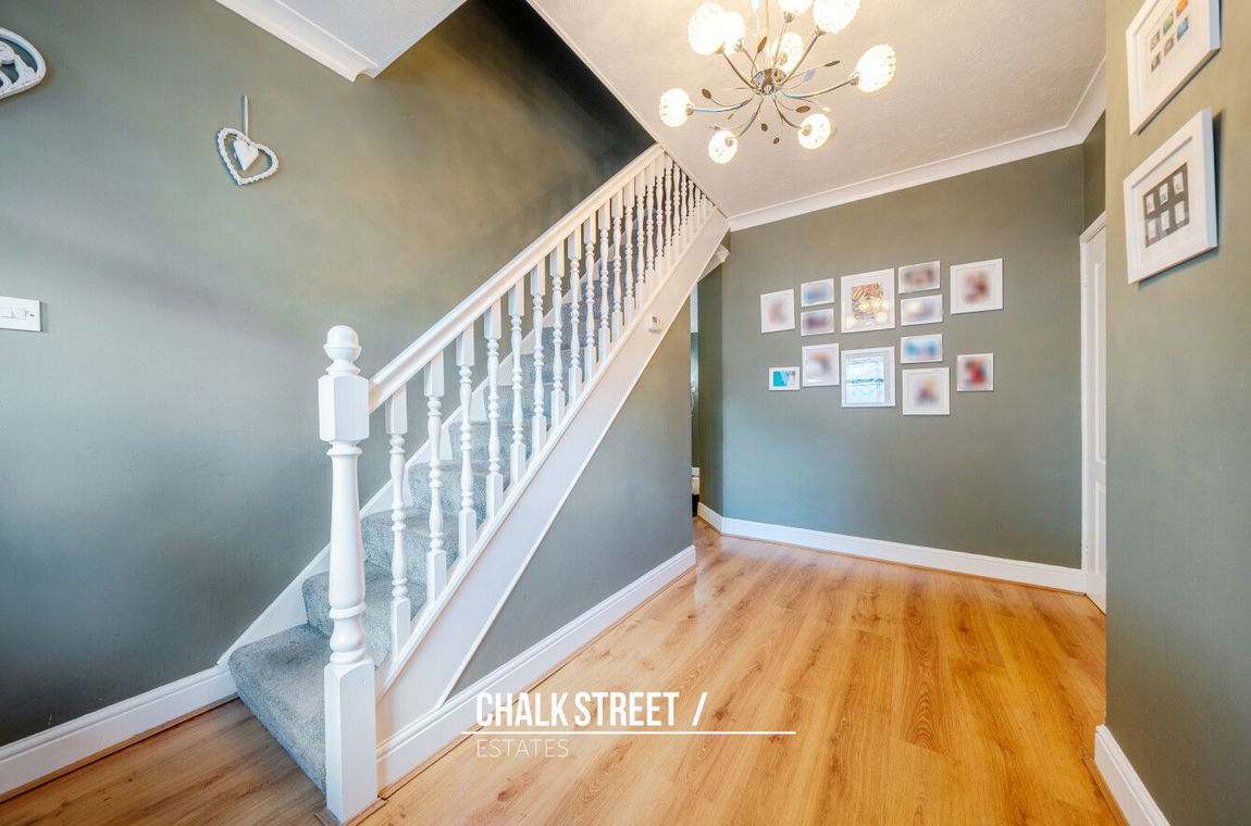 Spanning the full width of the rear of the home is the impressive open-plan kitchen / reception / dining room, measuring 28’10 x 21’2, with bi-fold doors opening directly onto the garden. The space is beautifully designed for modern family living and entertaining alike.