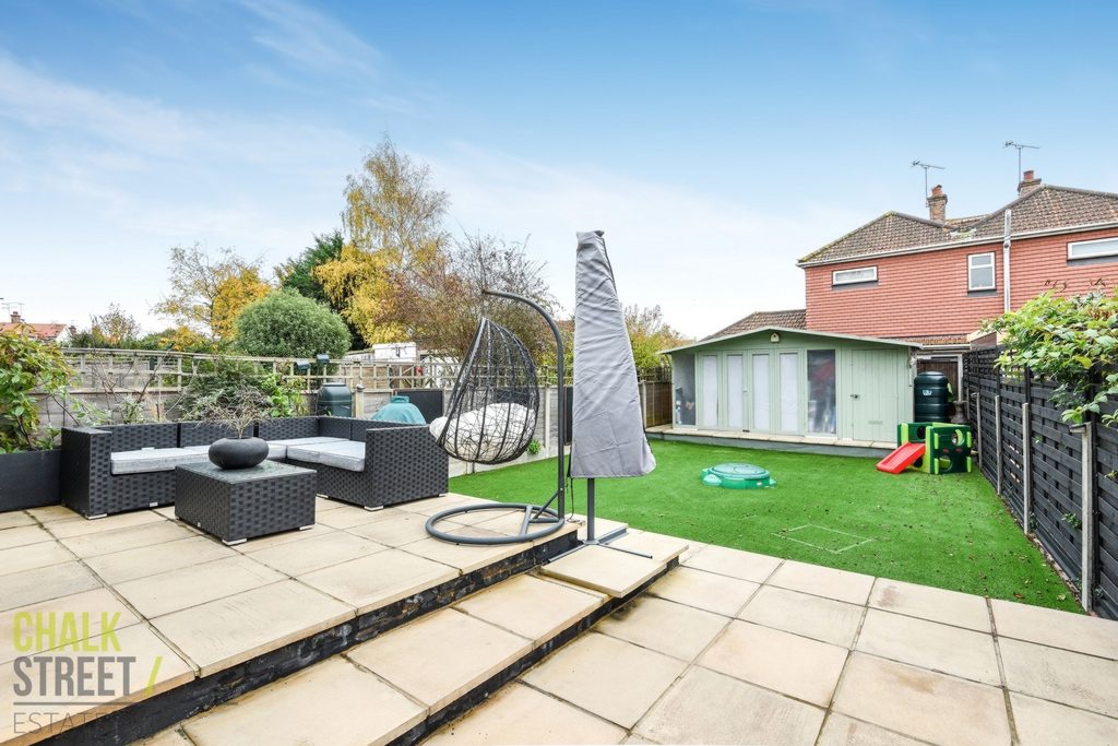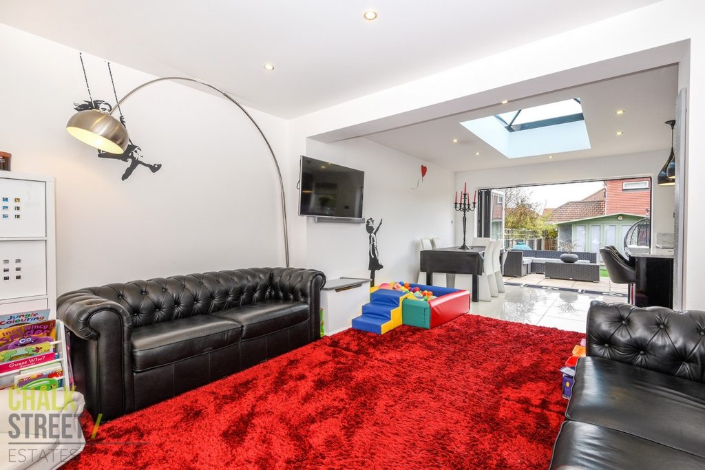 The spacious ground floor consists of a WC & utility room, a charming living room and separate study to the front, with a stunning, modern and light filled kitchen / diner with adjoining family room to the rear. A large set of bi-fold doors connects the house to a generously sized patio area and low maintenance,SOUTH FACING rear garden.