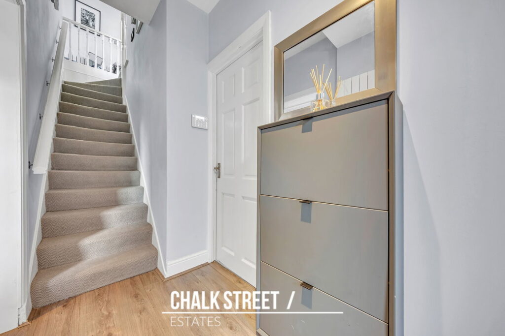Upon entering the home, a welcoming entrance hall leads directly to the first-floor staircase.