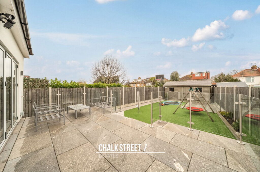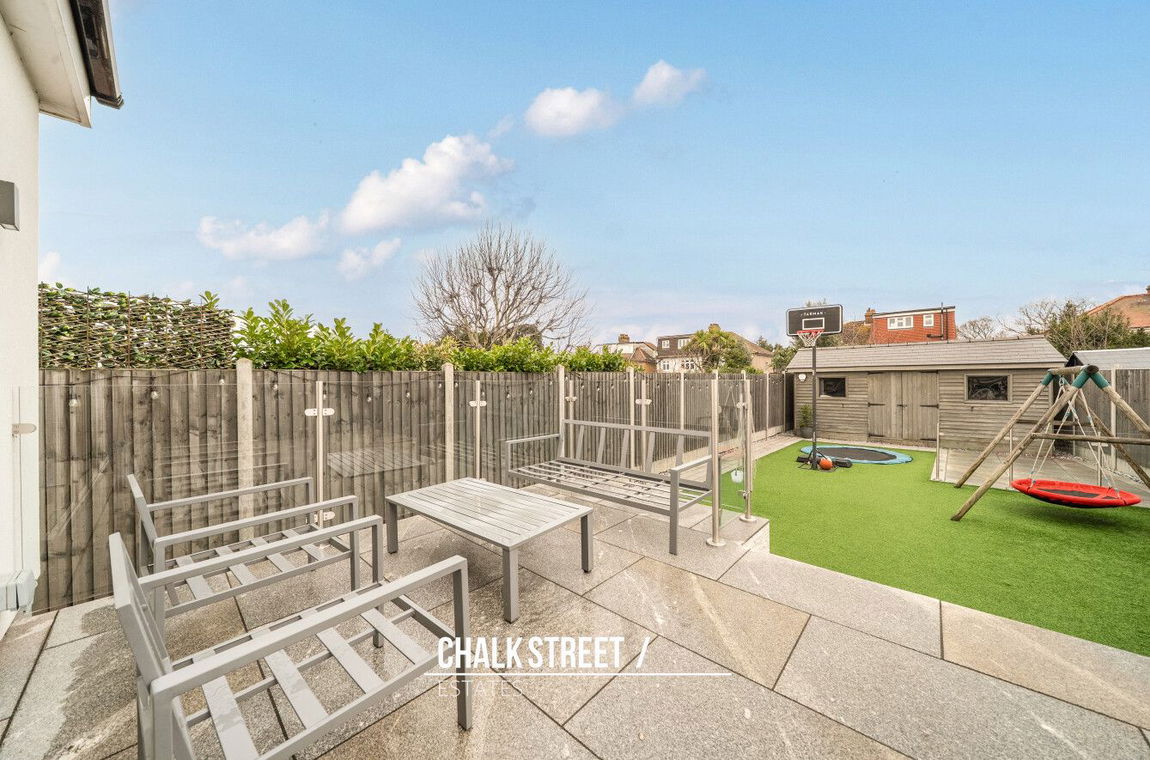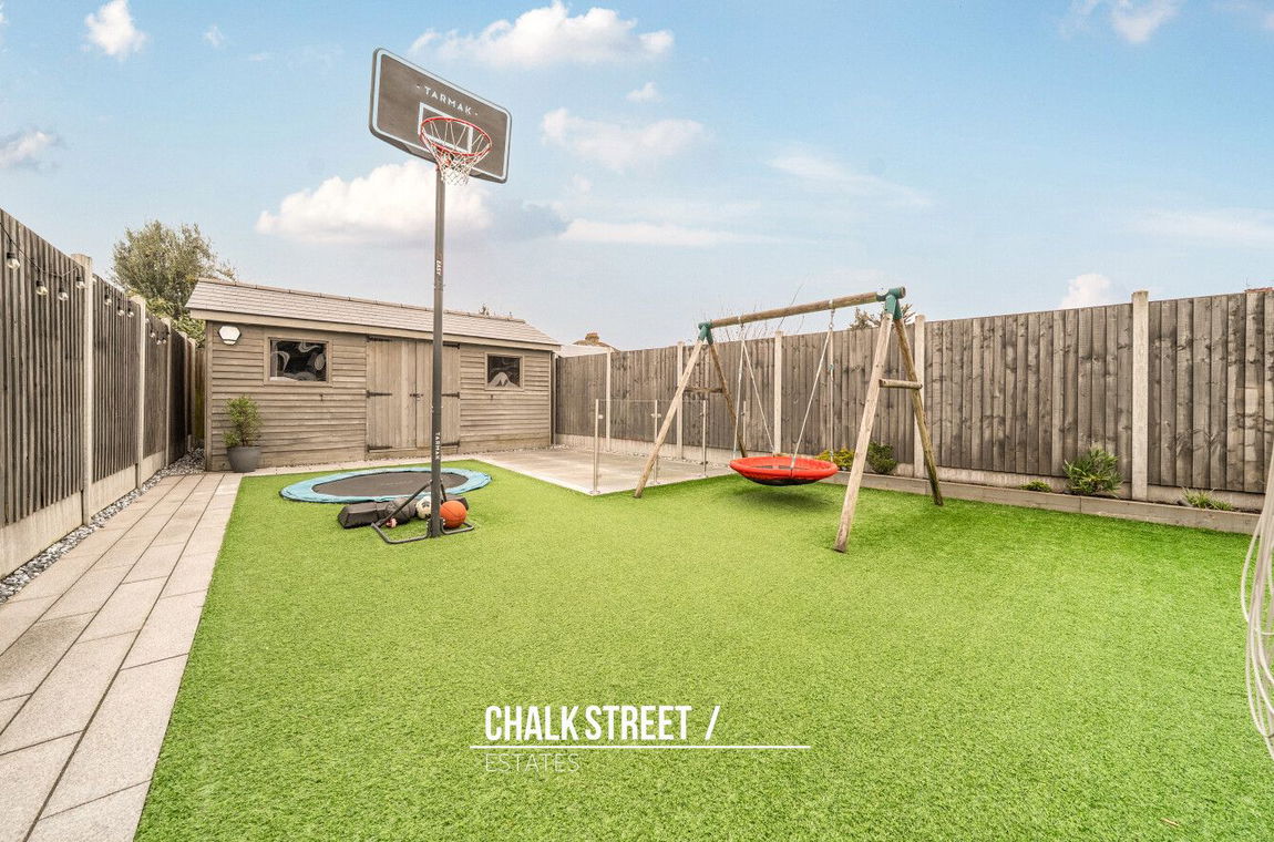The 57' garden commences with a patio area which is perfect for outdoor dining and entertaining whilst the remainder is predominantly with artificial lawn. At the base of the garden sits a charming summerhouse, offering potential as a home office, gym or an additional storage area.
