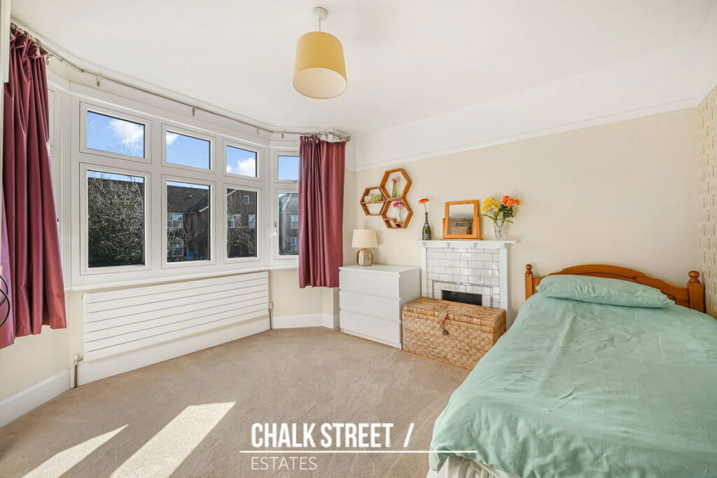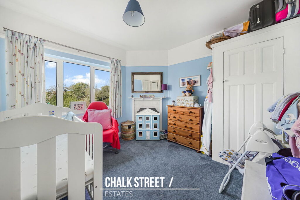 Moving upstairs, the landing leads to three comfortable bedrooms. Two are generously sized double bedrooms, with the principal bedroom enjoying a charming bay window that enhances its airy feel. The third bedroom, located to the rear, offers a comfortable single space.