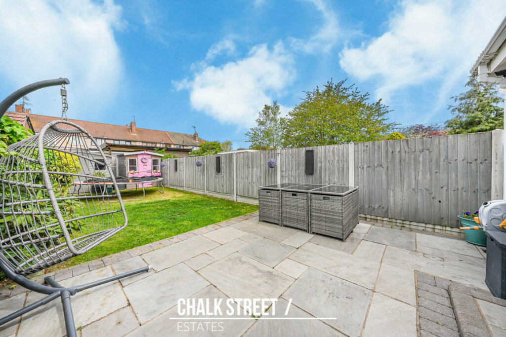 The rear garden commences with a patio area with the reminder predominantly laid to lawn. At the base of the garden, there are two handy storage sheds.
